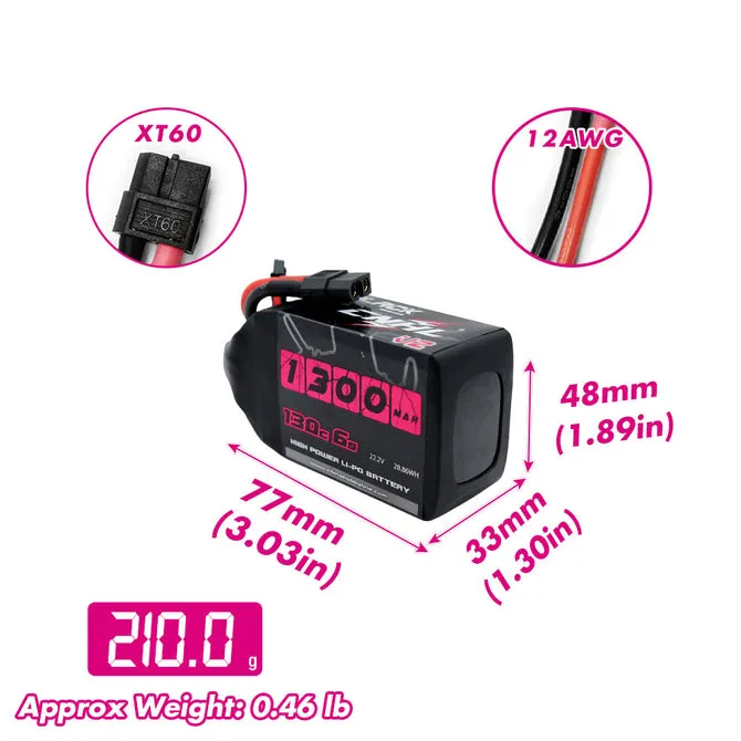 - Package: 2 * CNHL Black Series V2.0 1300mAh 22.2V 6S 130C Lipo Battery with XT60 Plug
