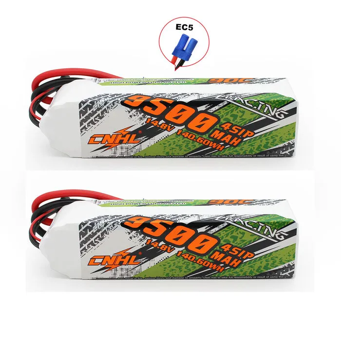 Package includes: 1 pack of CNHL Racing Series 9500mAh 14.8V 4S 90C Lipo Battery with EC5 Plug