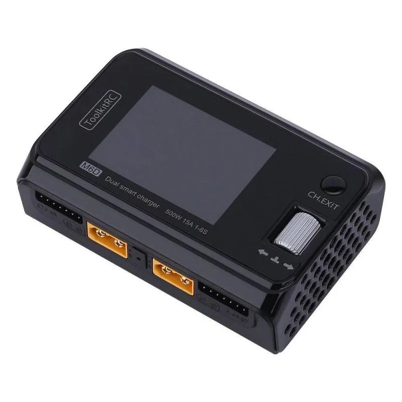 This is the new ToolkitRC M6D dual-port 500W charger, a great way to charge multiple batteries without the risk of using a parallel charging board.